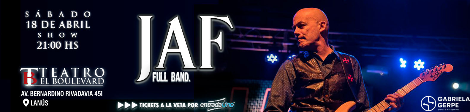 Su carrera comenzó a sus quince años, con su primera Banda de barrio, y se extiende hasta la actualidad. El punto bisagra en su historia ocurrió a sus 27 años, cuando Pappo y Vitico ( miembros fundadores de la emblemática Banda de heavy metal RIFF)lo convocaron para que se uniera al grupo, lo cual significó el despegue de la carrera artística de JAF hacia la gran escena musical argentina.